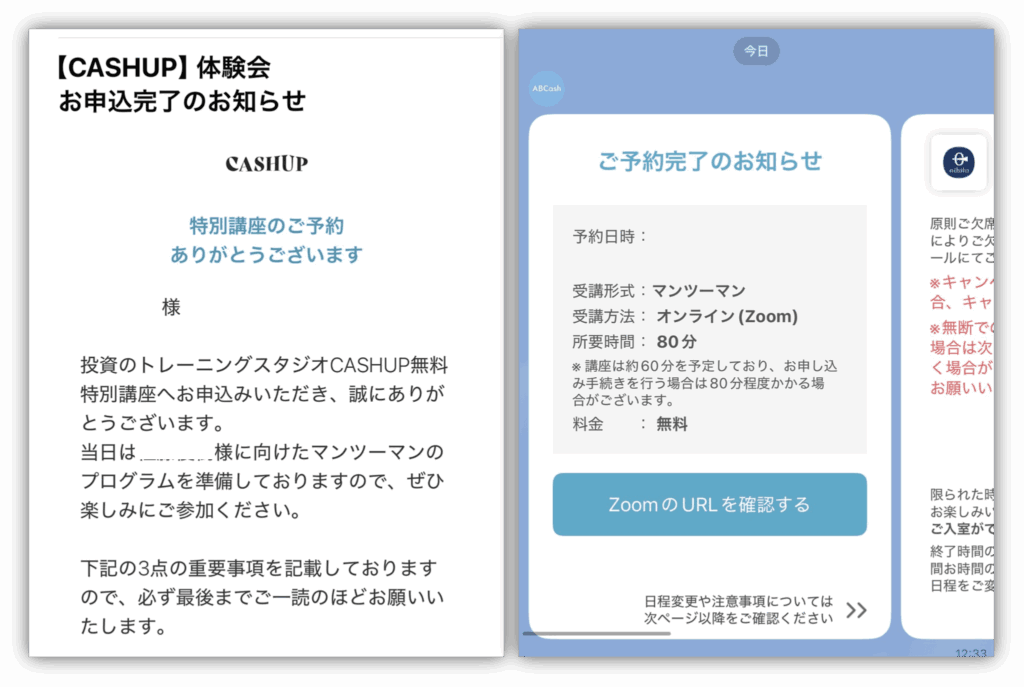 ここからは、私がCASHUPの無料体験を受けた感想を紹介するね。