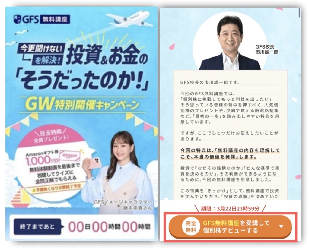 >>GFS無料講座(旧バフェッサ)のGWキャンペーンの詳細を確認する!