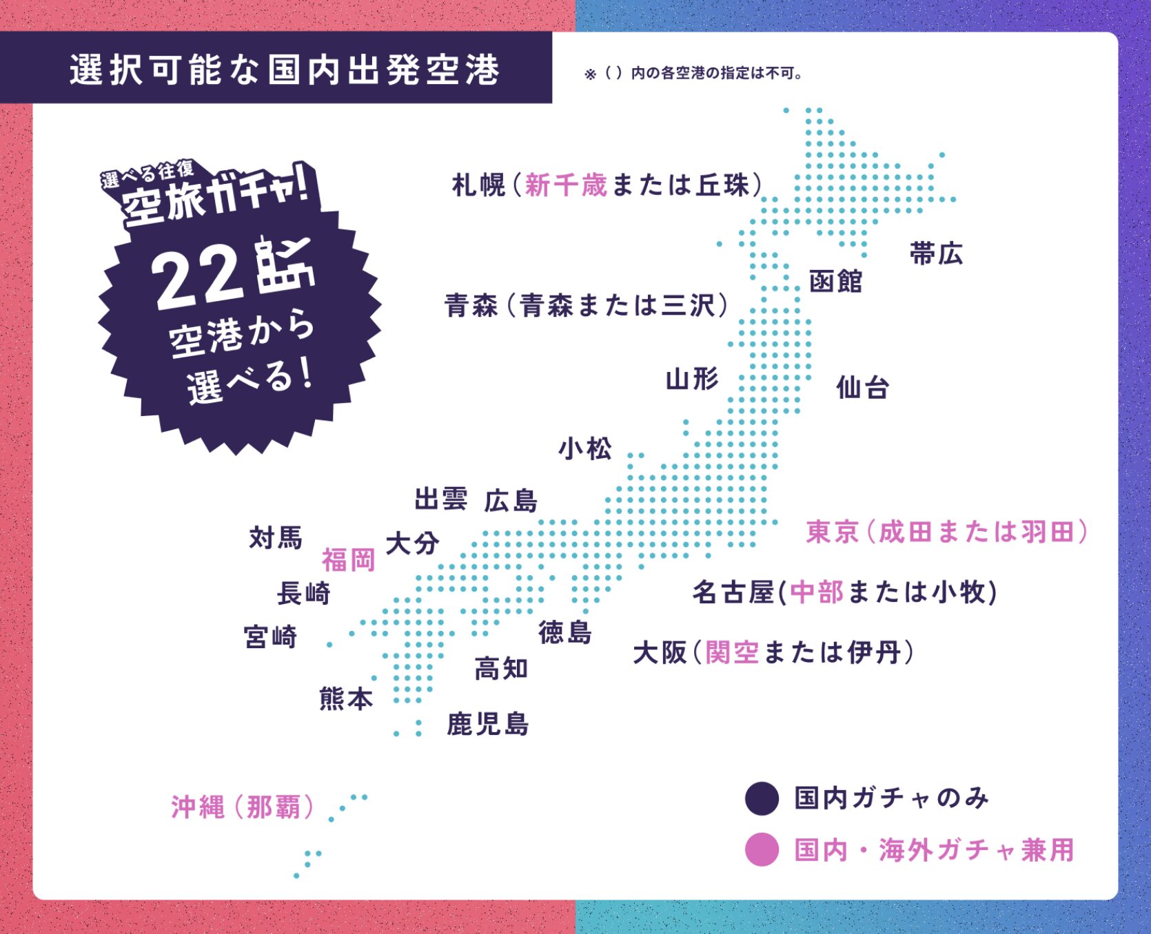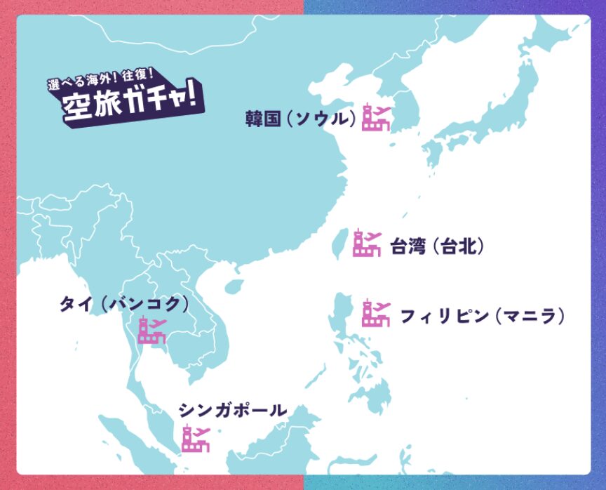ガチャをする時に出発空港が選べるので、好きなところを選択できるのも魅力的❣️