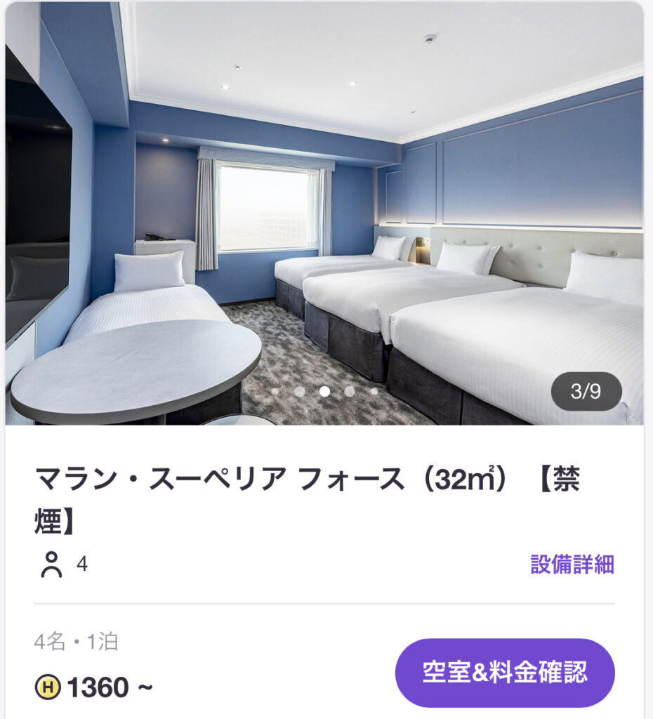 でも、HafHには複数人で泊まれるホテルも意外とある✨
