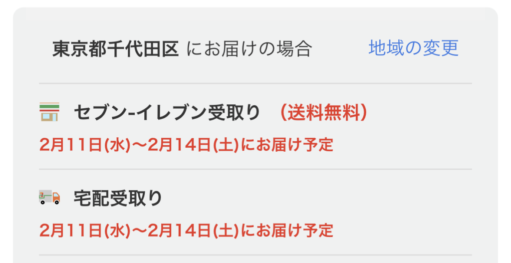 この地域は、商品や注文タイミングによってフラゲできない可能性があるよ。