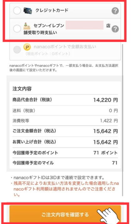 好きなお支払い方法を選んだら、「ご注文内容を確認する」をタップしてね!