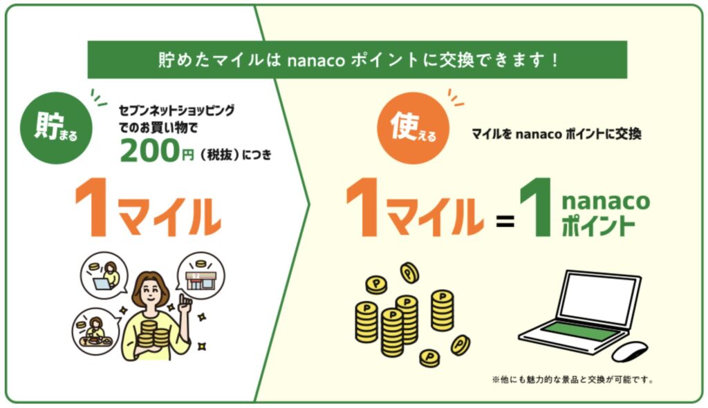 また、セブンネットでお買い物するとセブンマイルが貯まるのもメリットのひとつ!
