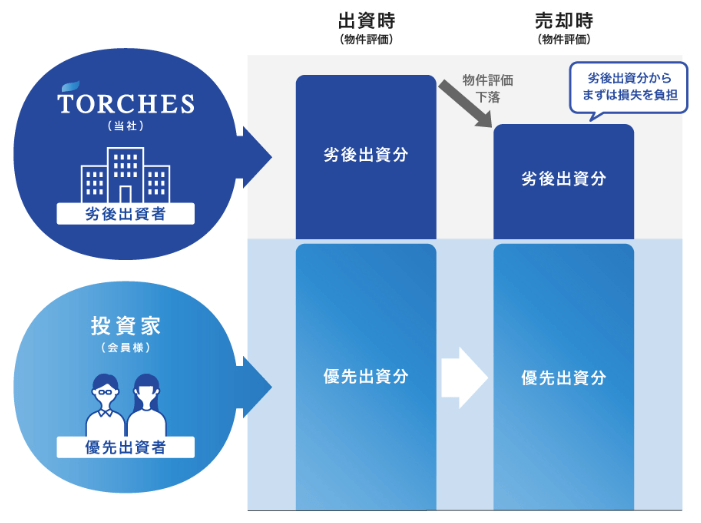 投資家が「優先出資者」、運営会社のトーチーズが「劣後出資者」として出資する仕組み🍀