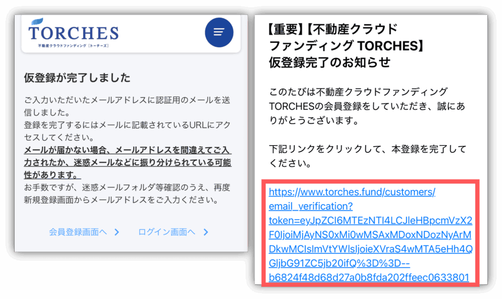 先ほど入力したアドレス宛に「仮登録完了のお知らせ」が届くから、メールに記載されているリンクをタップして本登録に進むよ!