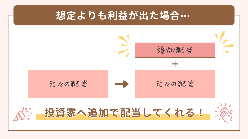 想定よりも高く物件が売却できた場合には、その利益分を投資家に追加で配当してくれること💖