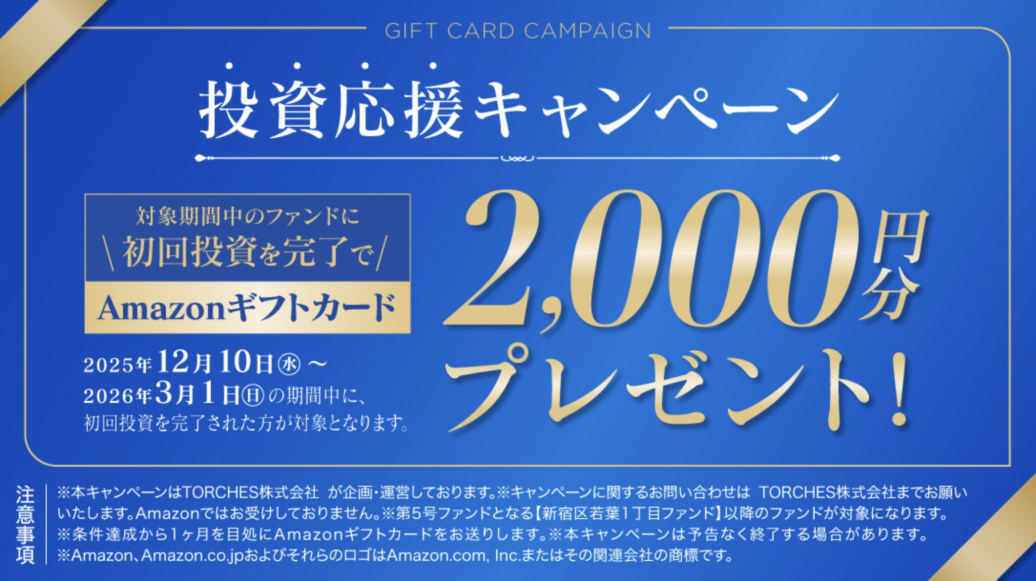 さらに2026年3月1日までに初めて投資を完了した人には、2000円分のアマギフが全員もらえる!