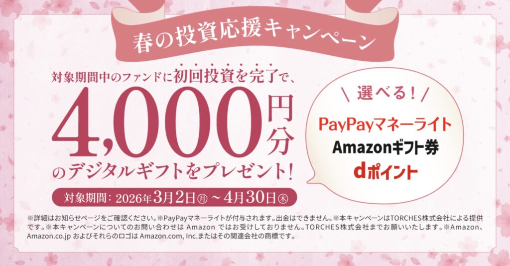 さらに2026年4月30日までに初めて投資を完了した人には、4,000円分のデジタルギフトが全員もらえる!